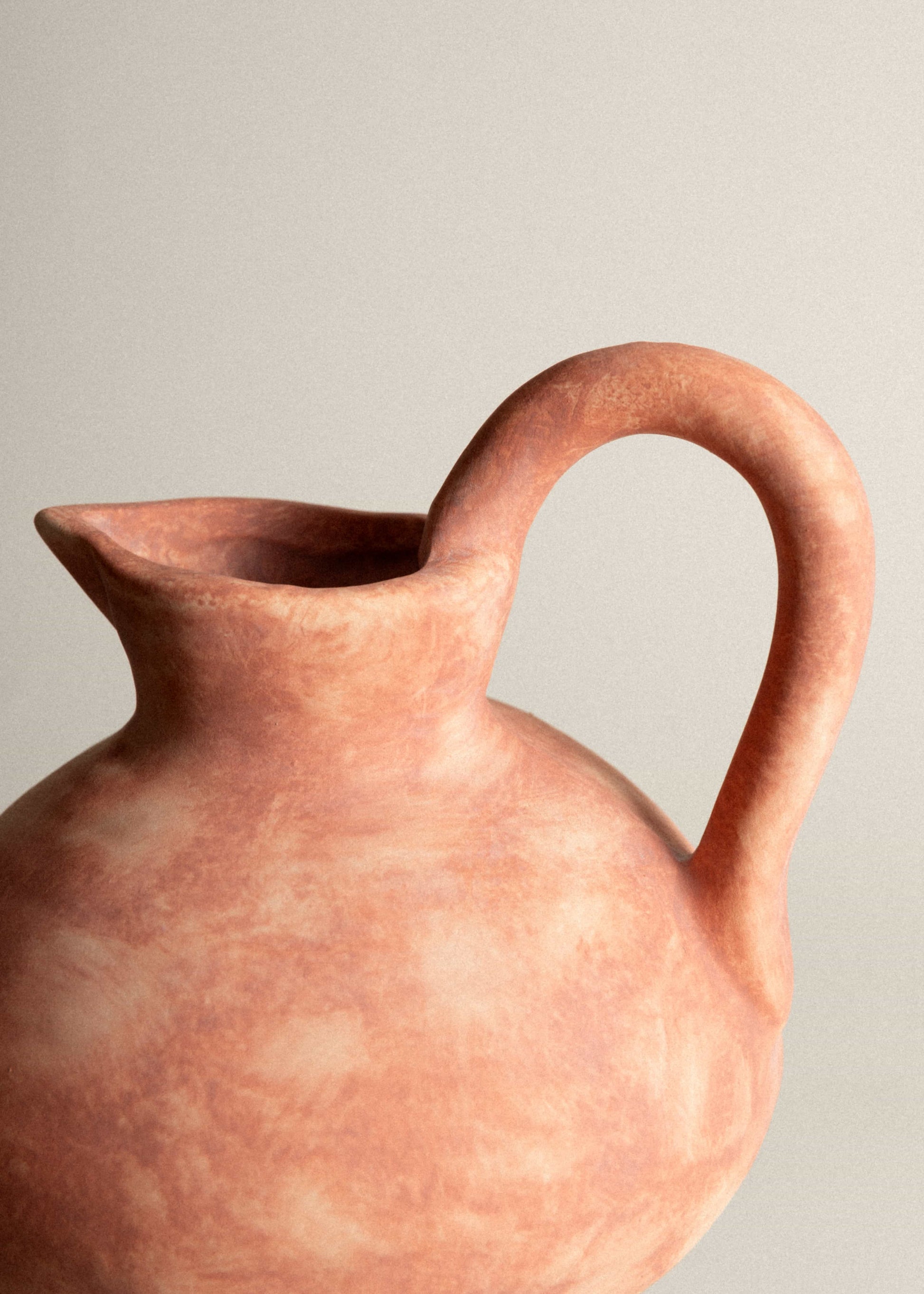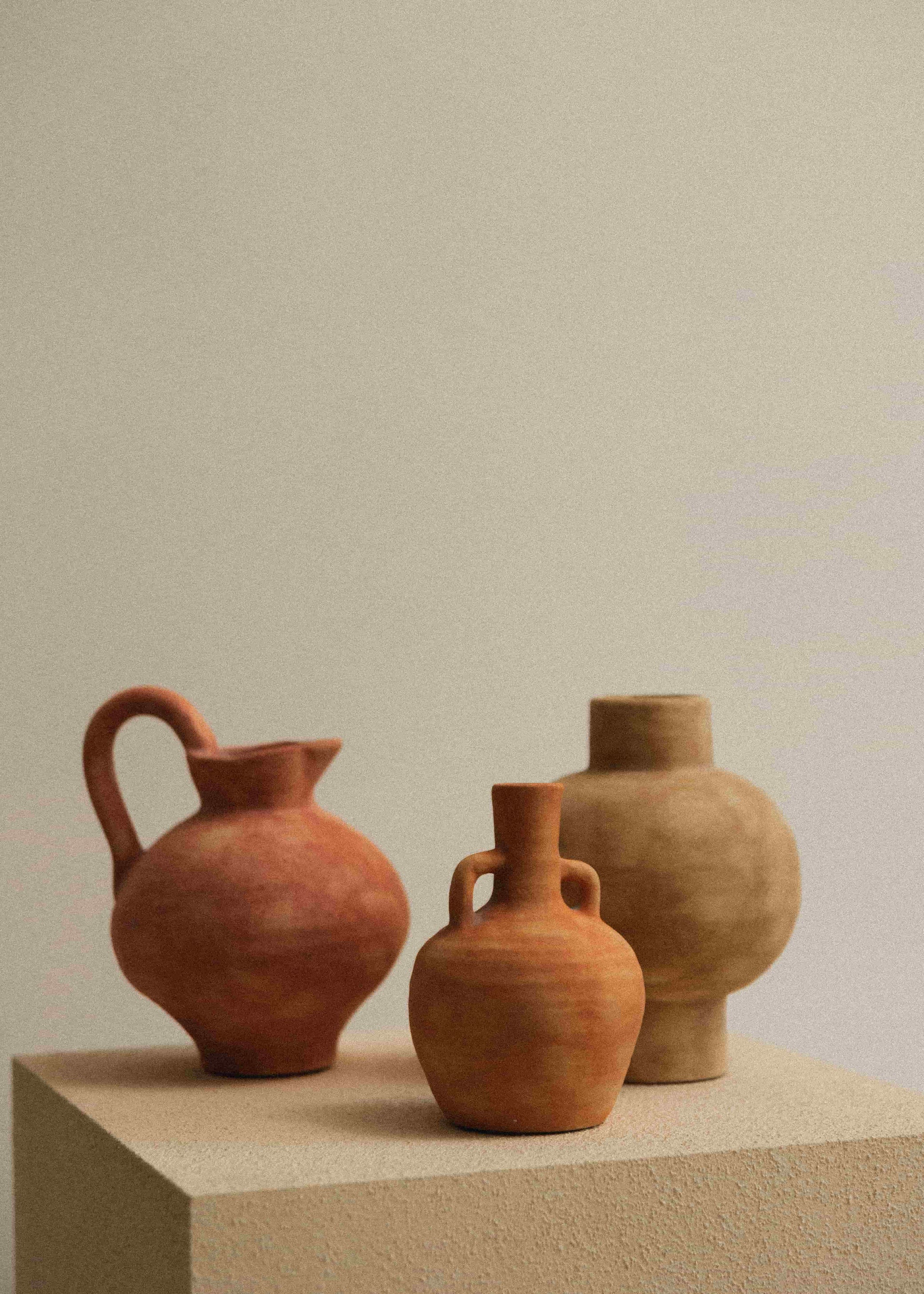 Shaped like the vessels once used in sun-drenched courtyards. Marraquino carries the warmth of Mediterranean earth. With its deep, blood-orange hue and rustic handle, it recalls simple rituals. Fetching water, tending flowers and welcoming guests. A timeless piece, rooted in memory, and made for the everyday sacred. Decorative use only.