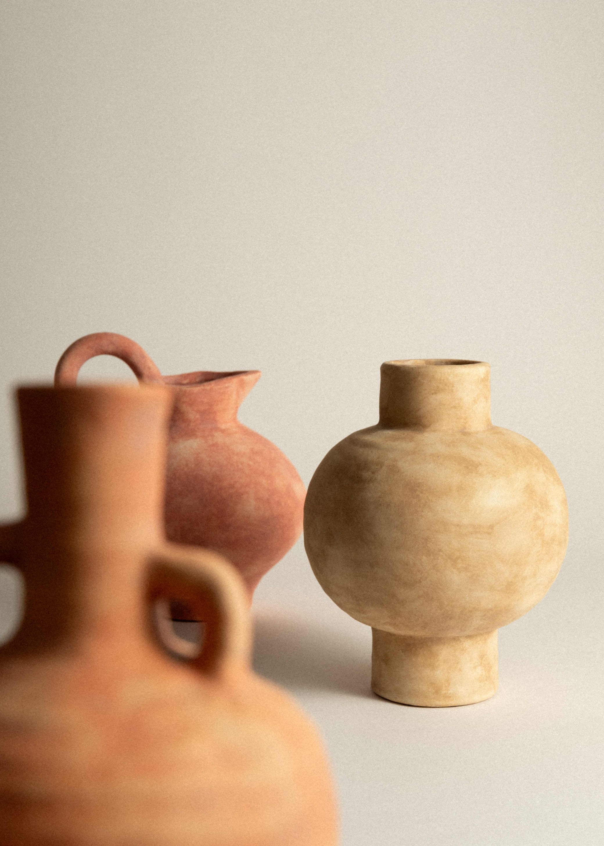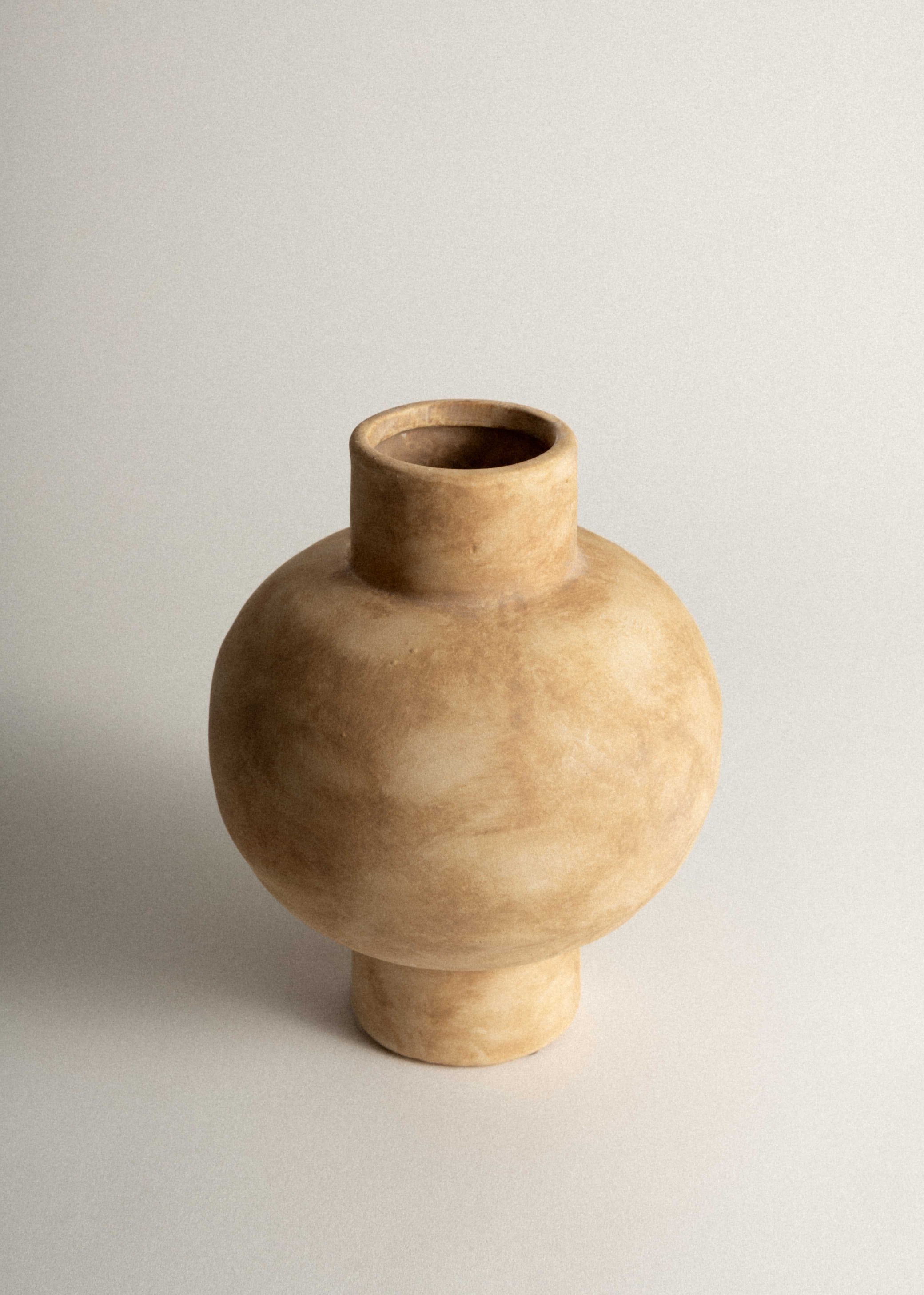 Noma is a modern decorative vase, defined by its soft curves and irregular surface. While it doesn’t reference a specific historical vessel, its form echoes the hand-shaped qualities of traditional pottery across Southern Europe.