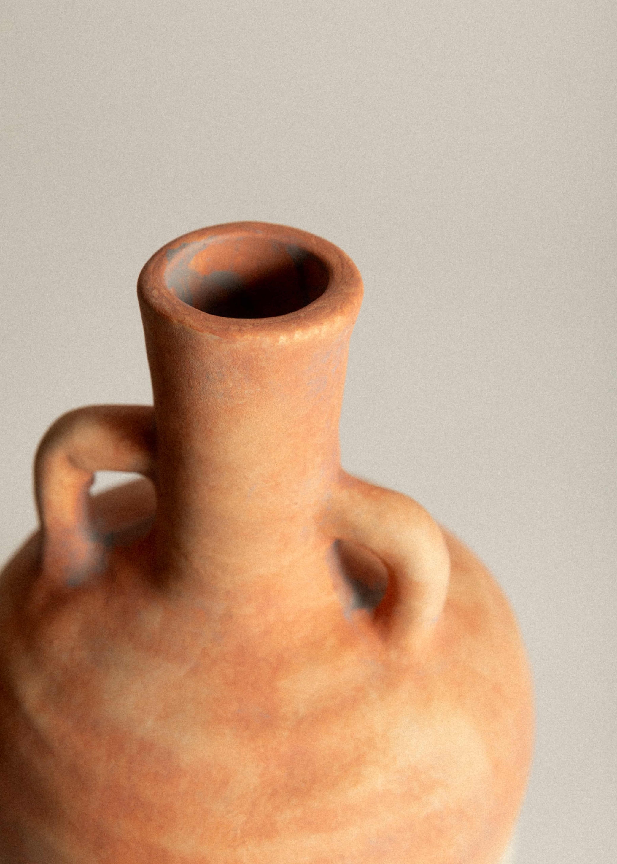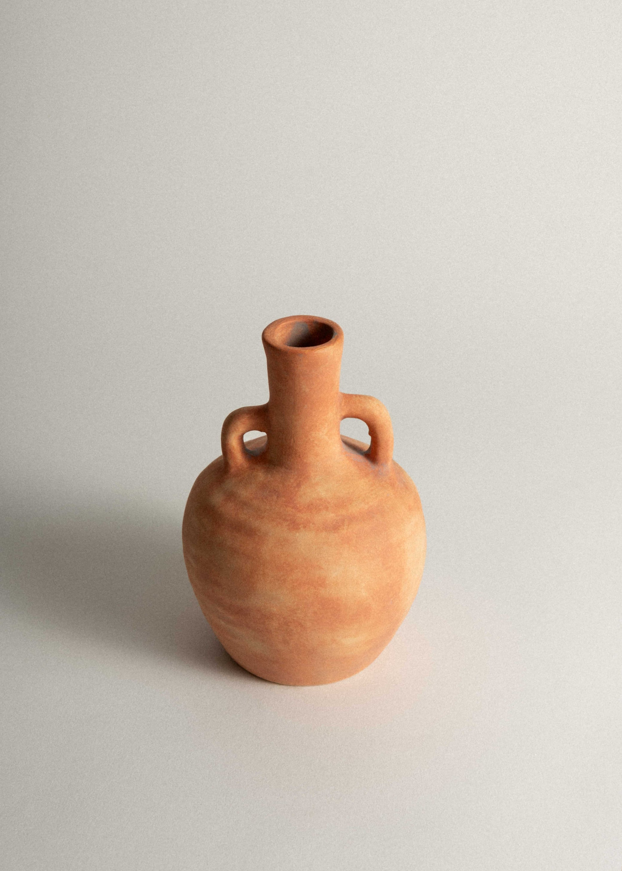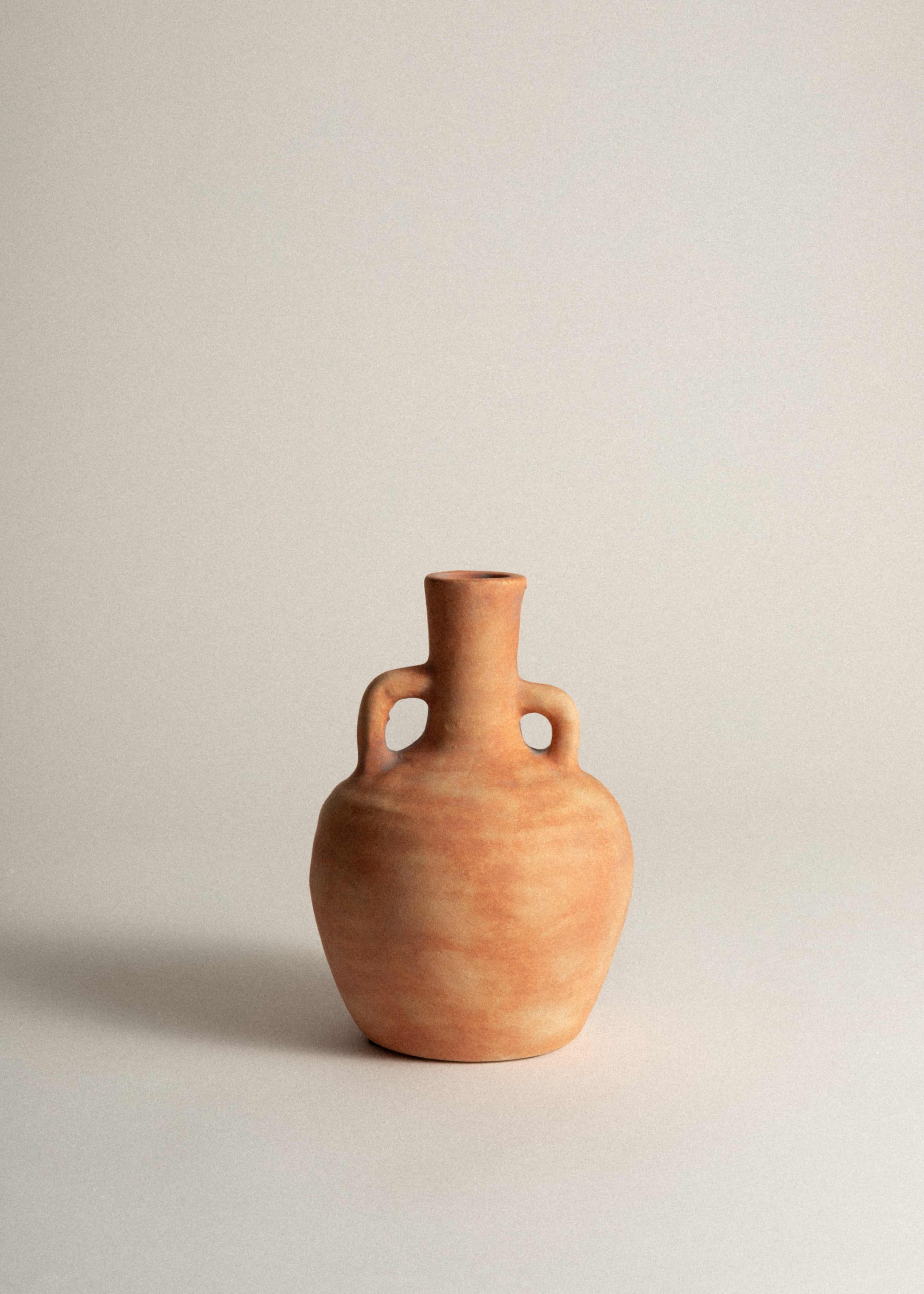 Bursting with the glow of Mediterranean sunsets. Pomara is a small, pear-shaped vase, that carries the warmth of ripe citrus and sun-soaked earth. Its deep blood-orange hue, and circular handles bring a playful touch to rustic elegance.